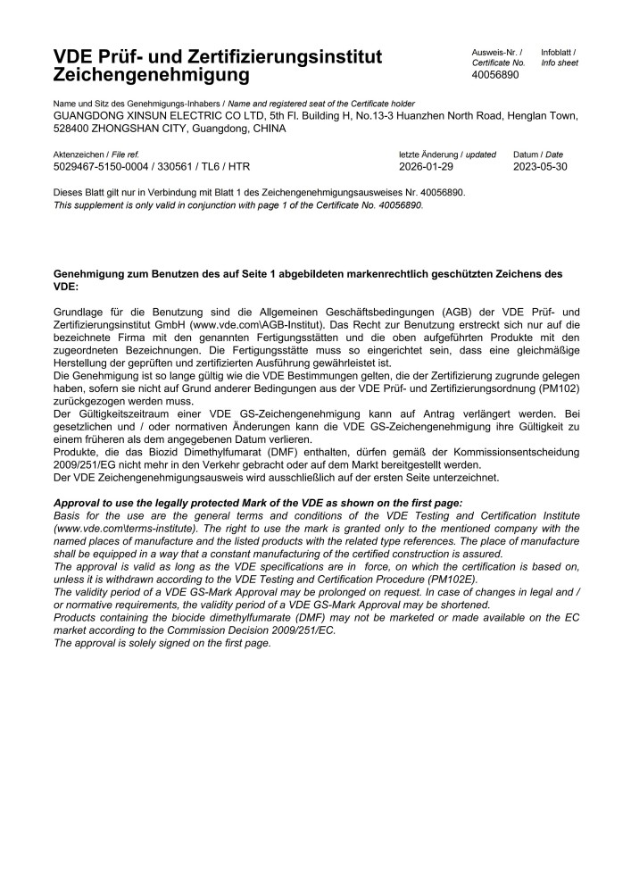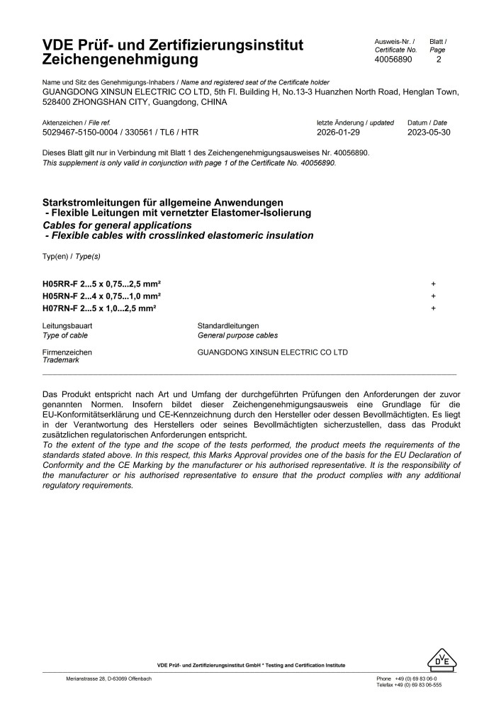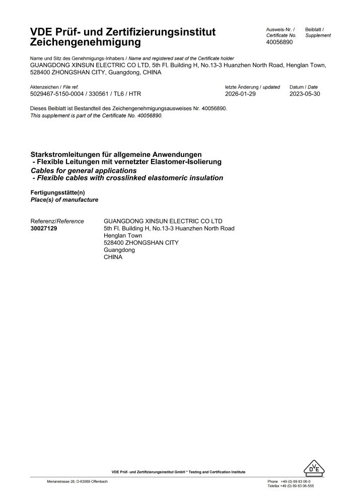VDE 橡胶线系列证书